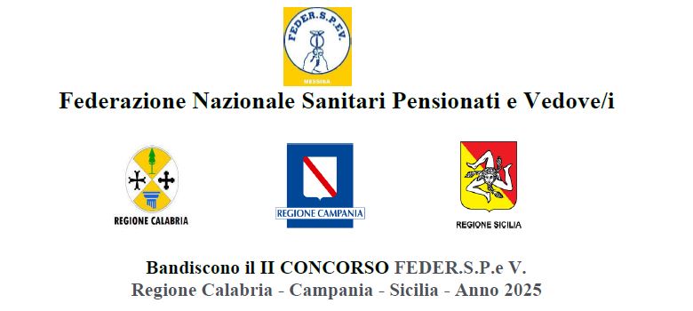 LA FEDER.S.P.e V. (Federazione Sanitari Pensionati e Vedovi) delle Regioni Calabria, Campania e Sicilia, su decisione dei rispettivi Comitati Direttivi Regionali, bandisce la II^ Edizione del Concorso letterario: “La rivincita delle parole”.